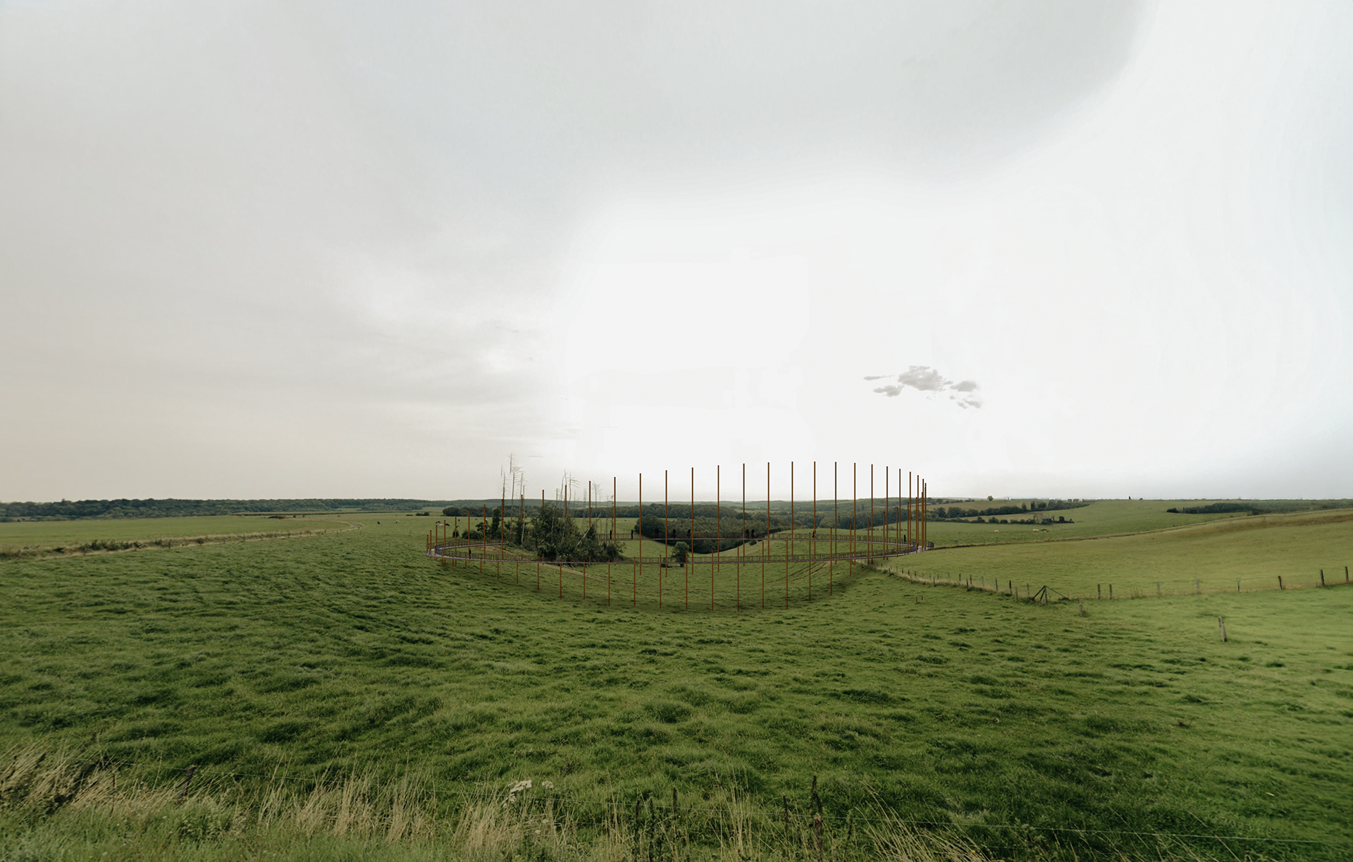 La structure agit comme une scène ouverte : elle cadre le paysage, l’oriente, le magnifie. Ce qui était un simple champ devient un observatoire sensible du territoire.