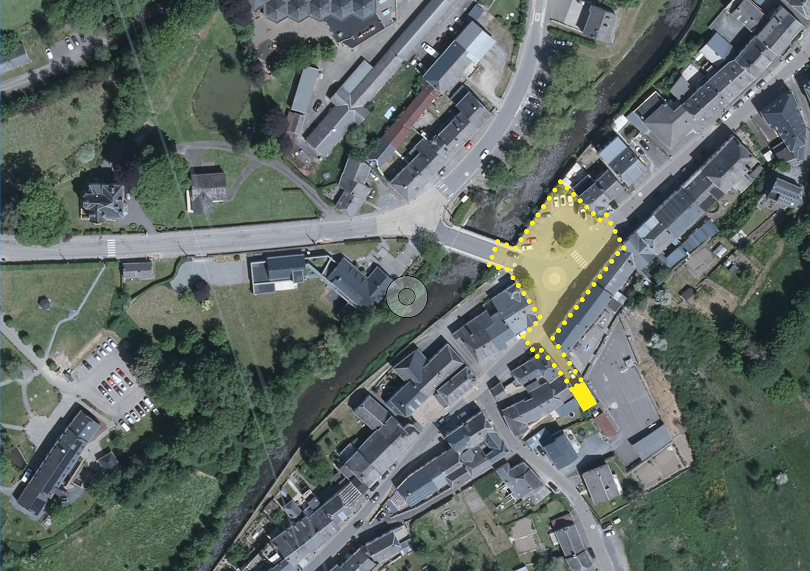 Lauréat du concours pour la végétalisation d'un quartier à Martelange, ce projet, actuellement au stade esquisse, vise à transformer cet espace emblématique en un espace plus perméable et verdoyant.